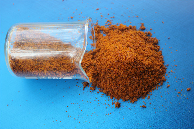 3、聚合氯化鋁鐵固態(tài)產(chǎn)品為黃褐色粒粉狀,極易溶于水。